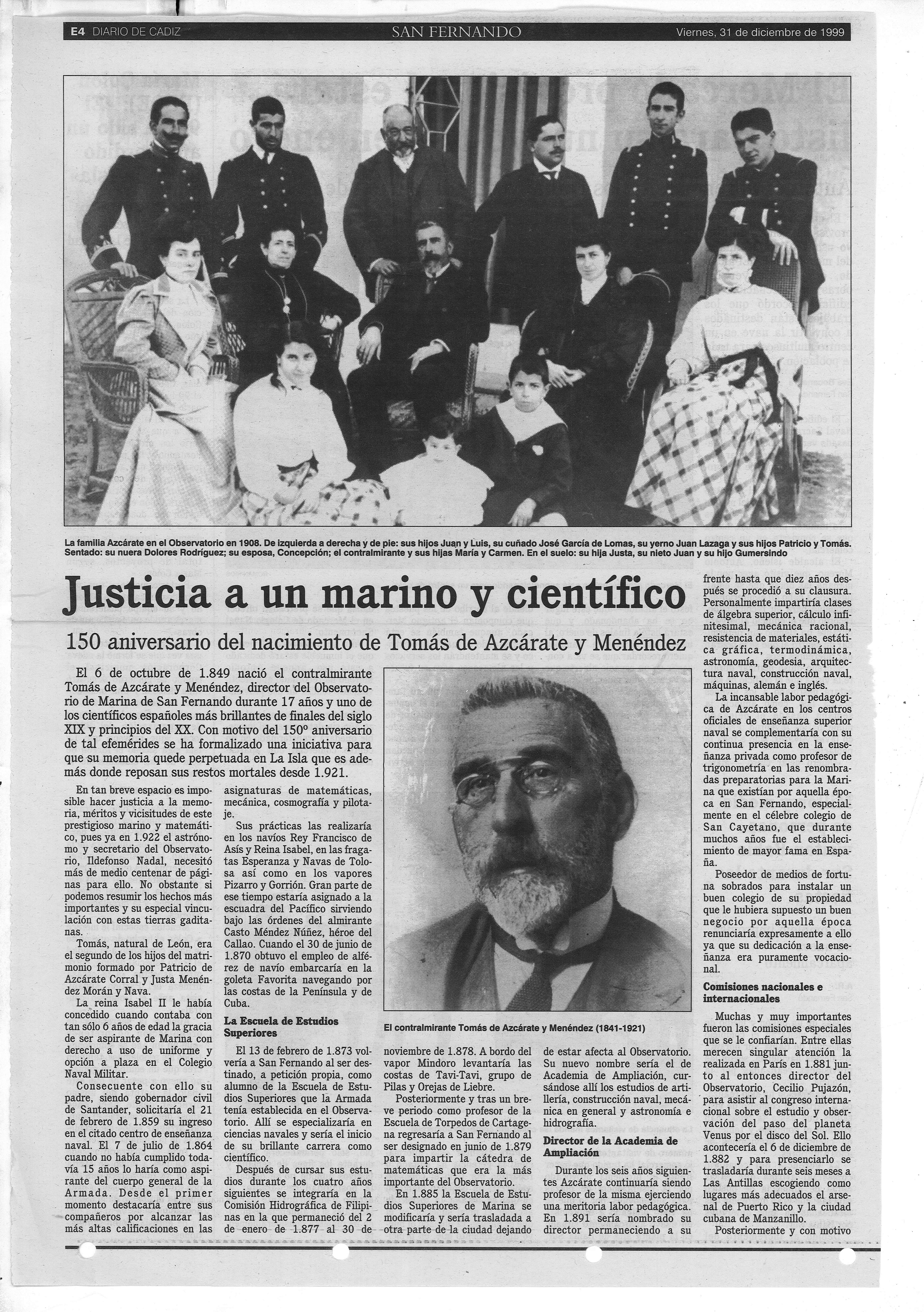 Artículo "Justicia a un márino y científico".