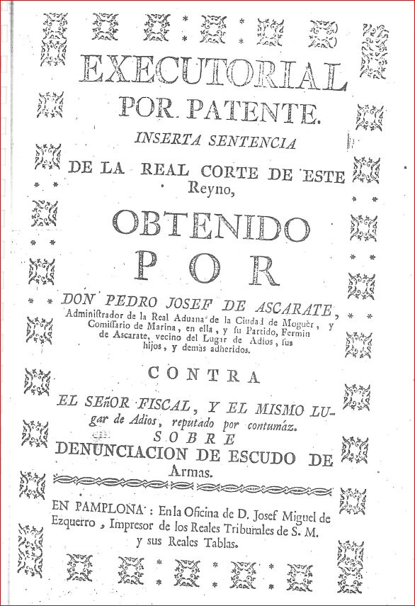 Ejecutorial de la Real Corte de Navarra de fecha 6 de Febrero de 1779.