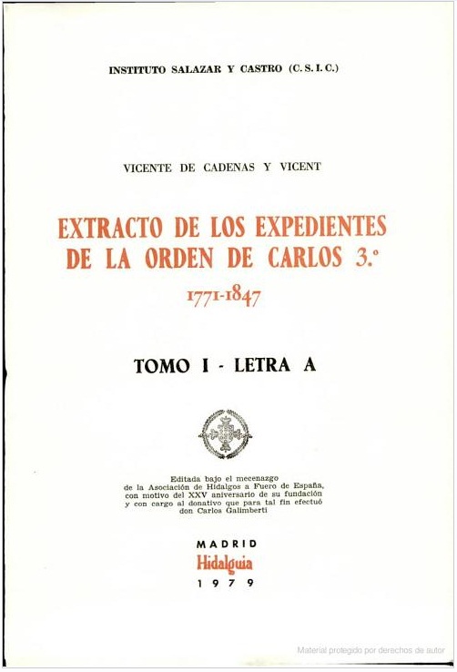 Vicente de Cadenas y Vicent (Instituto de Salazar y Castro). 1979.