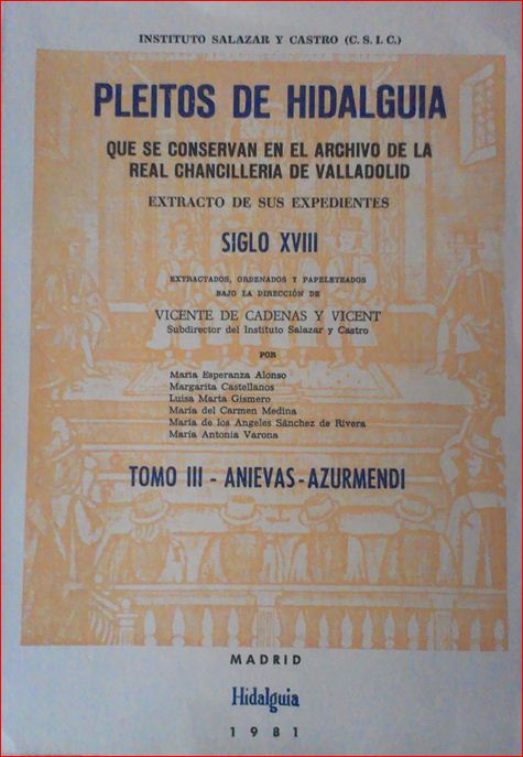 Vicente de Cadenas y Vicent (Instituto de Salazar y Castro). Archivo de la Real Chancillería de Valladolid. 1981.