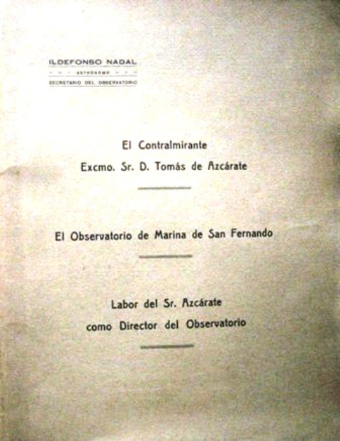 El Contralmirante Excmo. Sr. D. Tomás de Azcárate. Labor como Director del Observatorio.