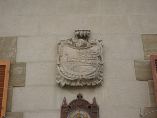 Este escudo se le ve ya un poco más ornamentado que el que vi en Azcárate, seguramente por ser de época posterior. Del escudo en cuestión me llamó la atención dos cosas principalmente: